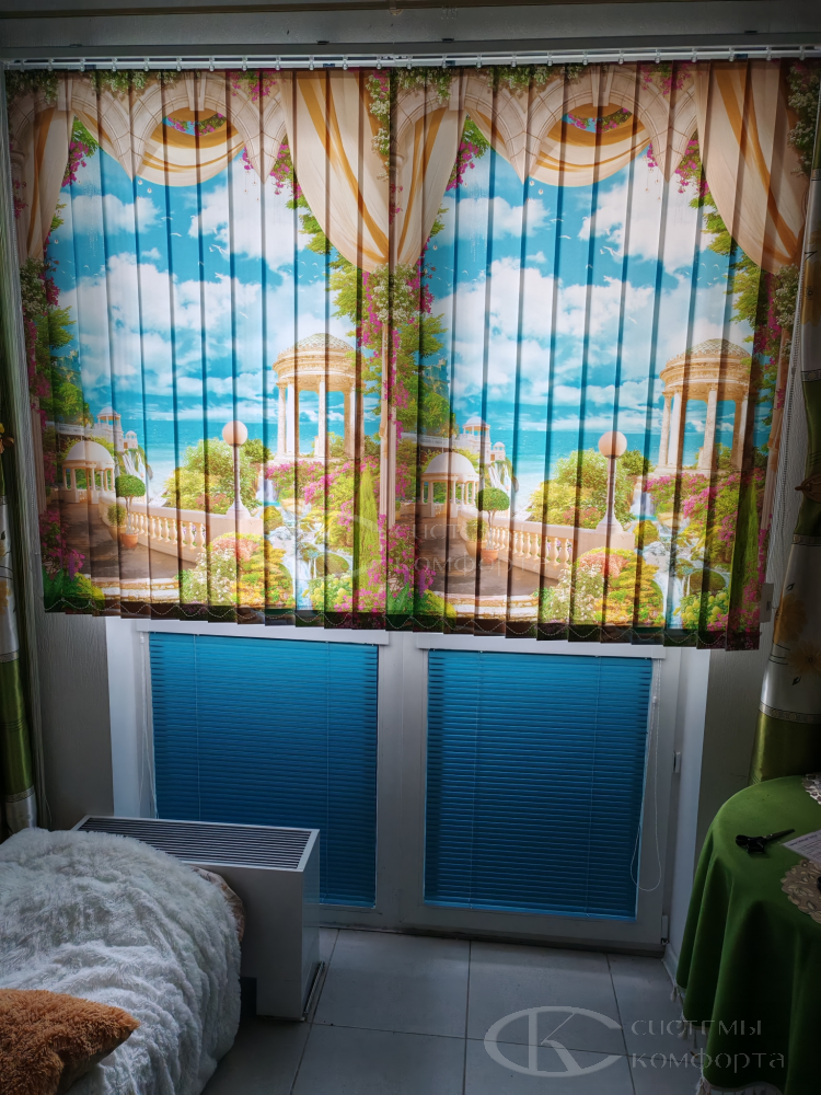 - Балкон/лоджия: защита от солнца и любопытных взглядов. Горизонтальные (алюминиевые, ПВХ) или рулонные.