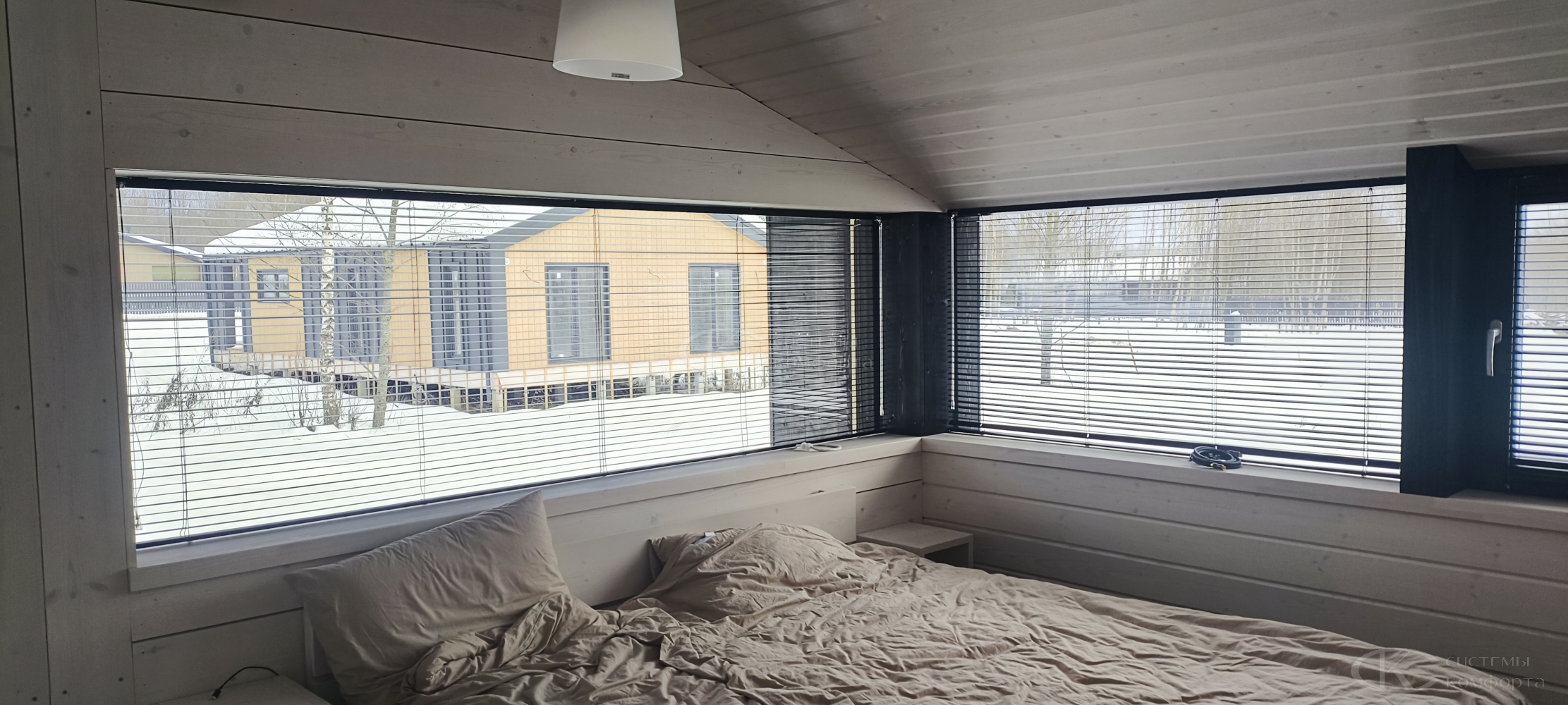 • Ширина ламели 16 мм — выбор эстетов. Визуально воспринимаются легче классических 25 мм, не имеют эффекта массивности. В плане управления и функционала аналогичны другим системам. Недостаток: в открытом состоянии будут видны отверстия для лески.